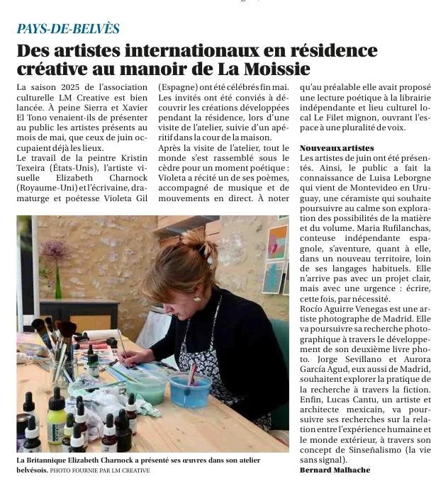 in Journal Sud-Ouest about the residency program and the artists’ working at Manoir de la Moissie